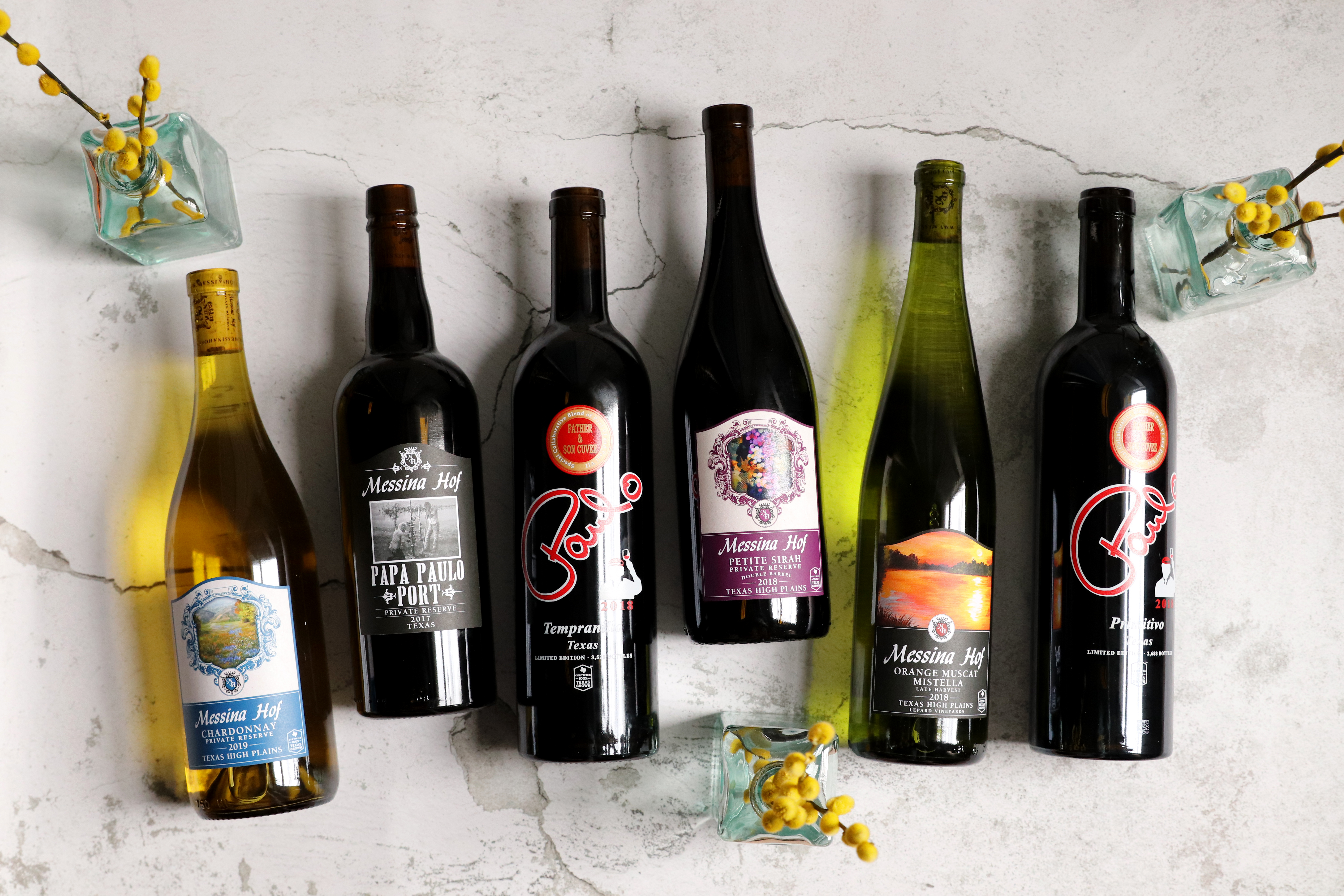 Messina Hof produces over 75 different wines all made from Texas-grown grapes. Our main wine collections include Private Reserve and Artist Series. We also have wine collections solely designated for wholesale including Barrel Cuvée, Dry Cuvée, and Tribute Series.